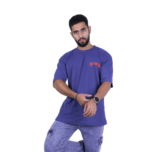Blue Pizza Invasion Back Print Oversized T-shirt